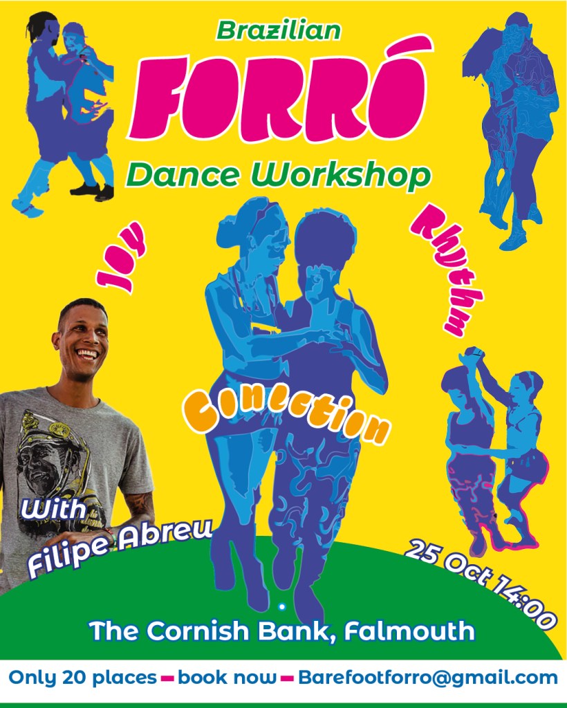 This workshop is the first step in building a Forró community here in Cornwall. From this launch, we hope to meet regularly to dance and practise together, while inviting guest teachers and musicians to lead workshops and masterclasses.